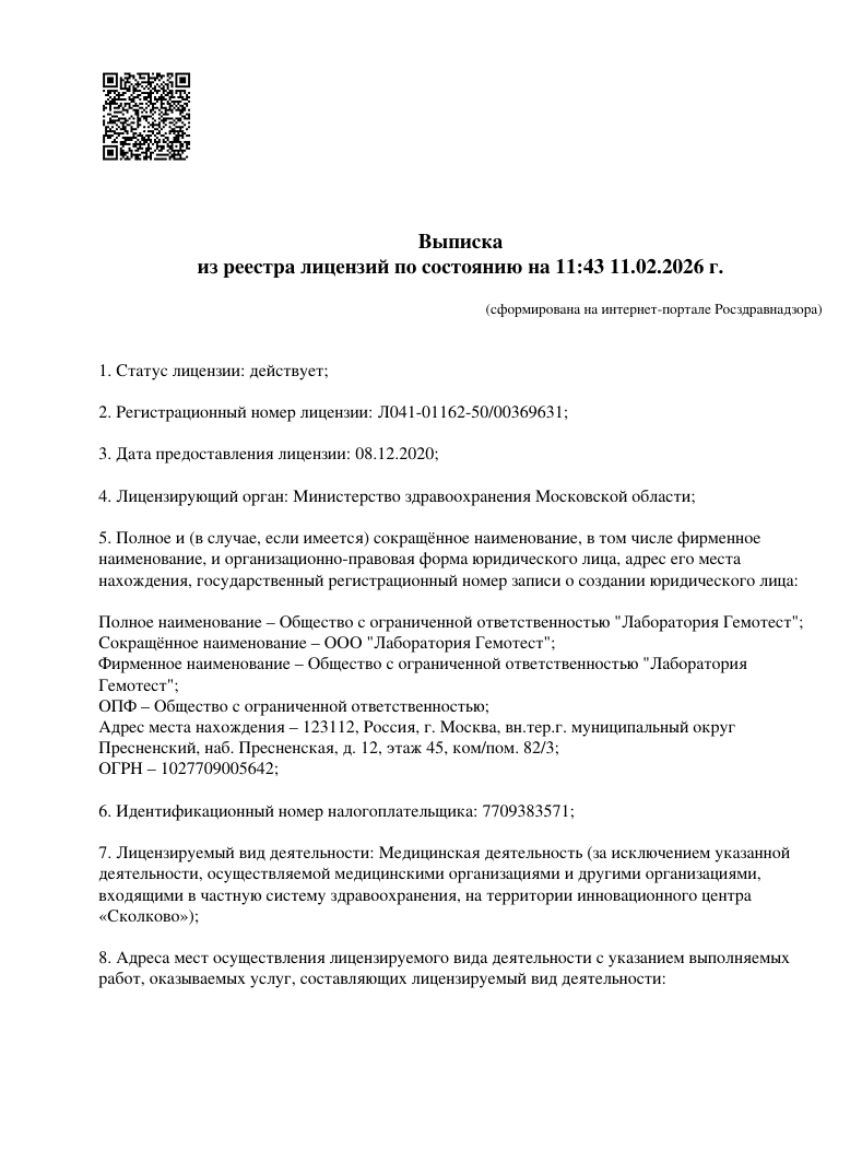 Все анализы выполняются методами ПЦР и секвенирования нового поколения (NGS). Точность результатов — до 99,9999%.